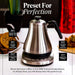 CUSTOMIZE W/ PRESET TEMPERATURES: Tired of that burned coffee taste in the morning? Our easy to use, accurate variable temperature presets allow you to never again burn your coffee or tea leaves, leaving you with a gourmet cup of coffee or tea whenever you want